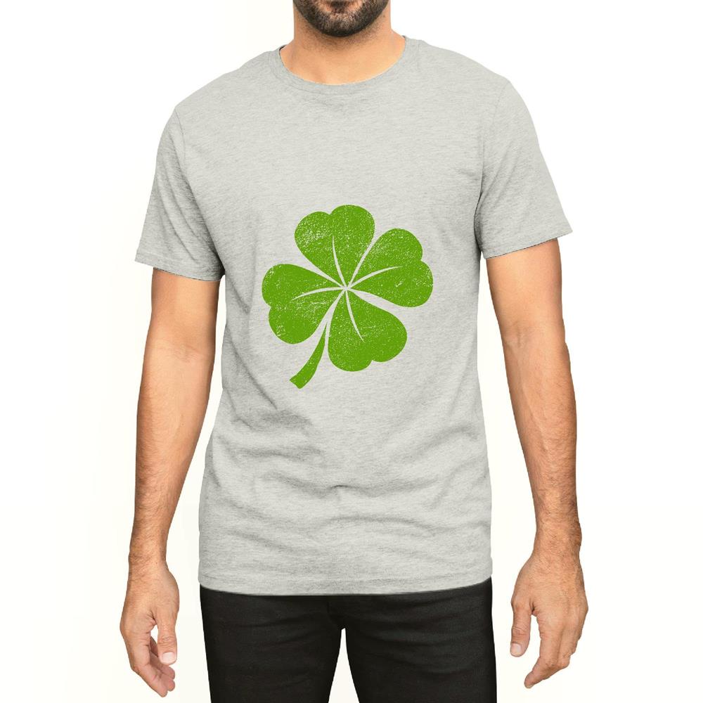 Unique Gift for St Patricks Day Vintage Faded Retro Four Leaf Clover Men Women White Gray Multicolor T shirt