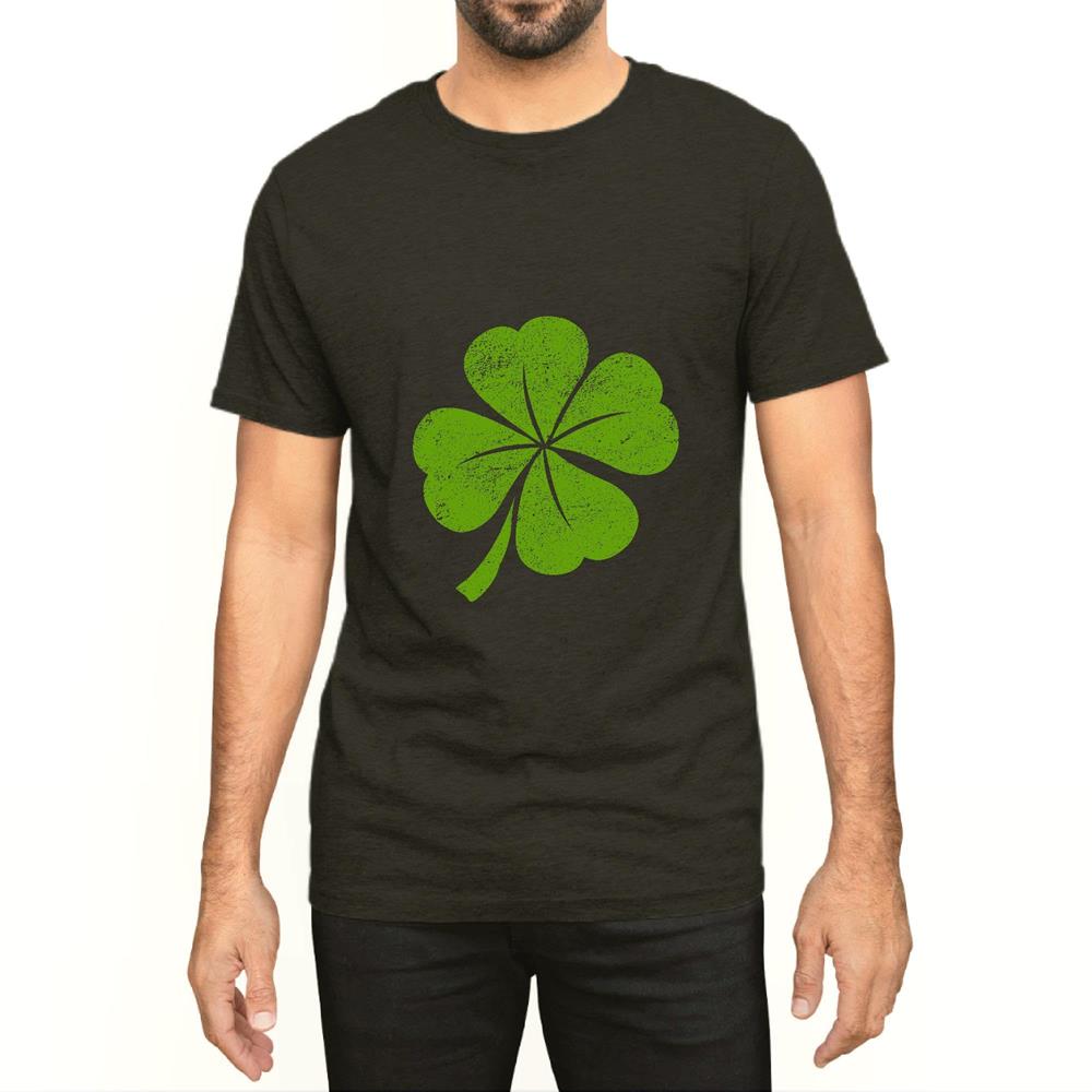 Unique Gift for St Patricks Day Vintage Faded Retro Four Leaf Clover Men Women Black Multicolor T shirt