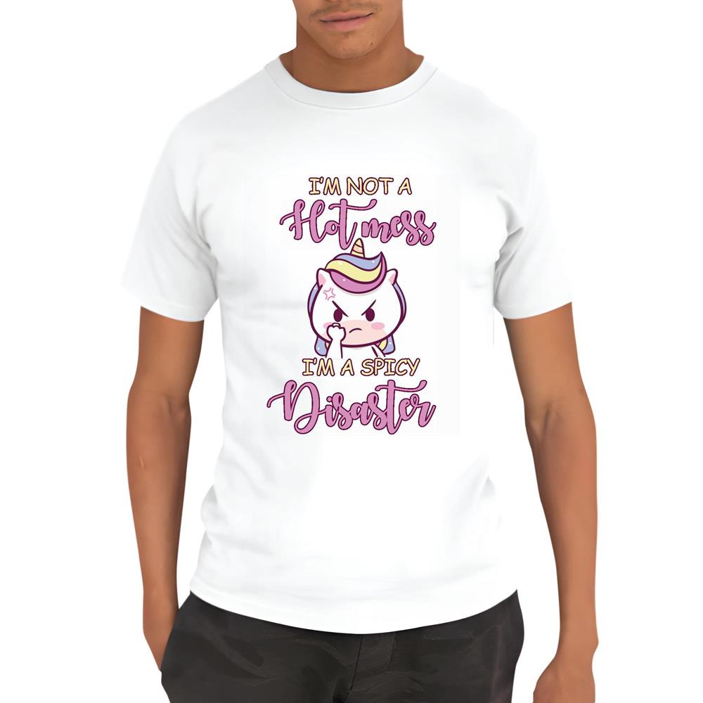Unique Gift for Spicy Disaster Lovers Unicorn I am not a Hot Mess Men Women White Gray Multicolor T shirt