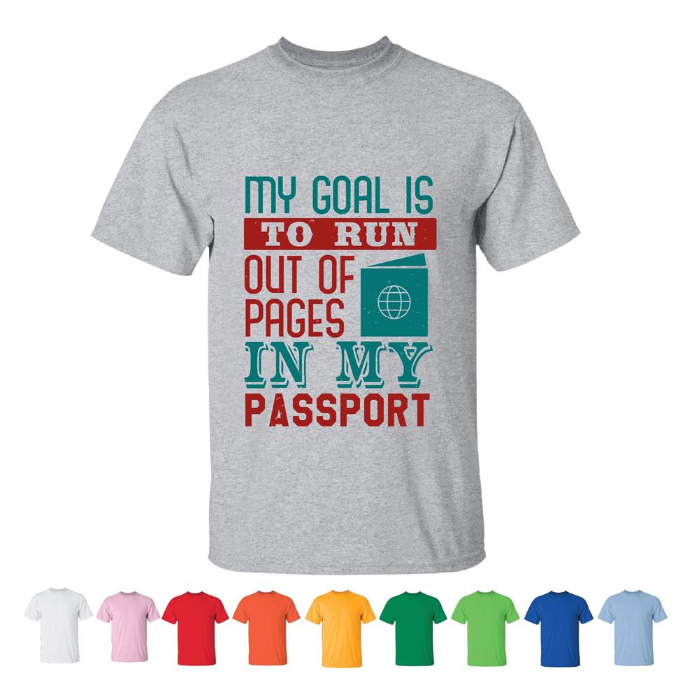 Unique Gift for Travelers My Goal Is To Run Out Of Pages In Passport Men Women White Gray T shirt