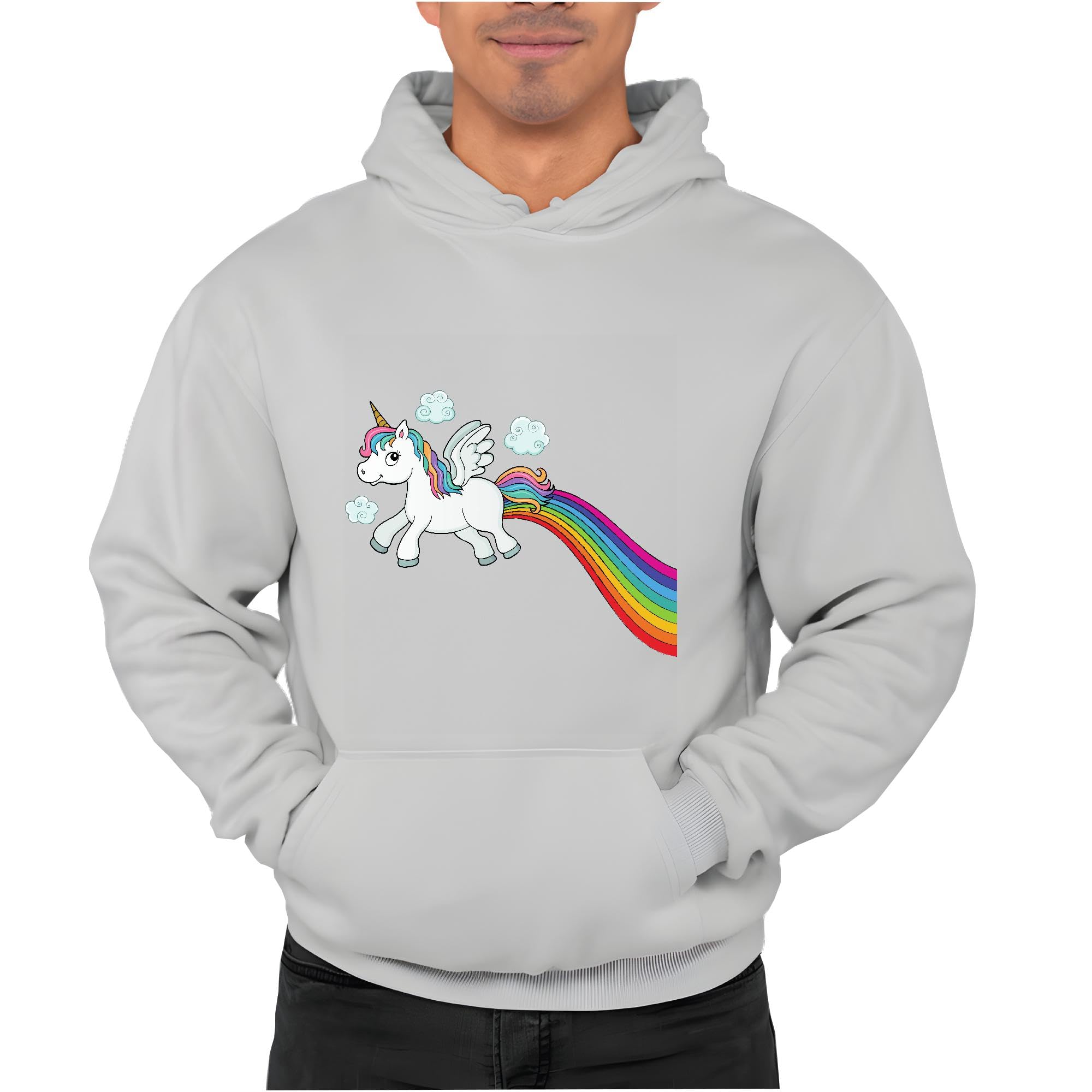 Unique Gift for Unicorn loving Comedy Fans Magical Farting Rainbow Humor Gray and Muticolor Unisex Hoodie