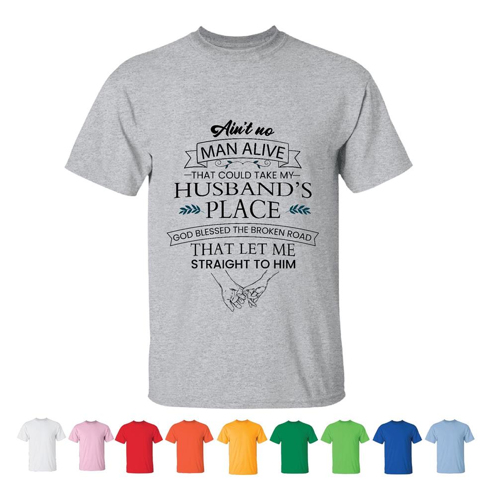 Unique Gift for Widows Missing Husband Saying Aint No Alive That Could Take His Place Men Women White Gray Multicolor T shirt