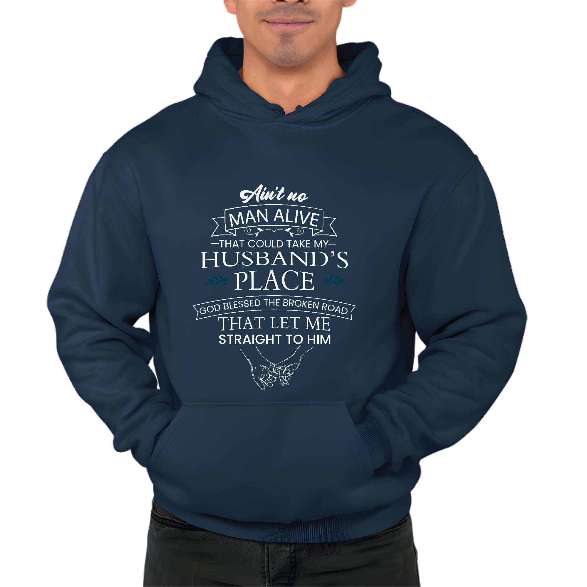 Unique Gift for Widows Missing Husband Saying Aint No Alive That Could Take His Place Navy and Muticolor Unisex Hoodie