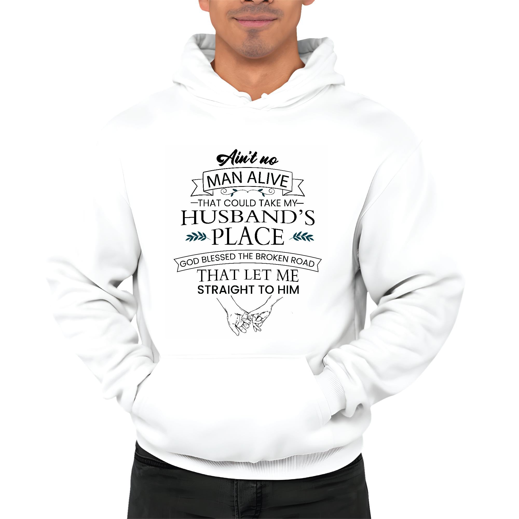 Unique Gift for Widows Missing Husband Saying Aint No Alive That Could Take His Place White and Muticolor Unisex Hoodie