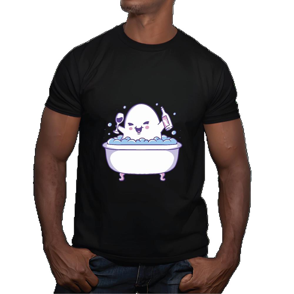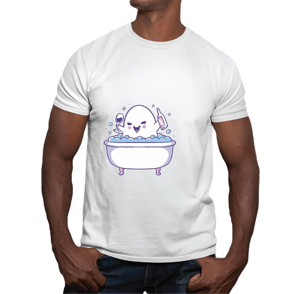 Unique Gift for Wine Lovers Ghost Sipping in a Bathtub Design Men Women White Gray Multicolor T shirt