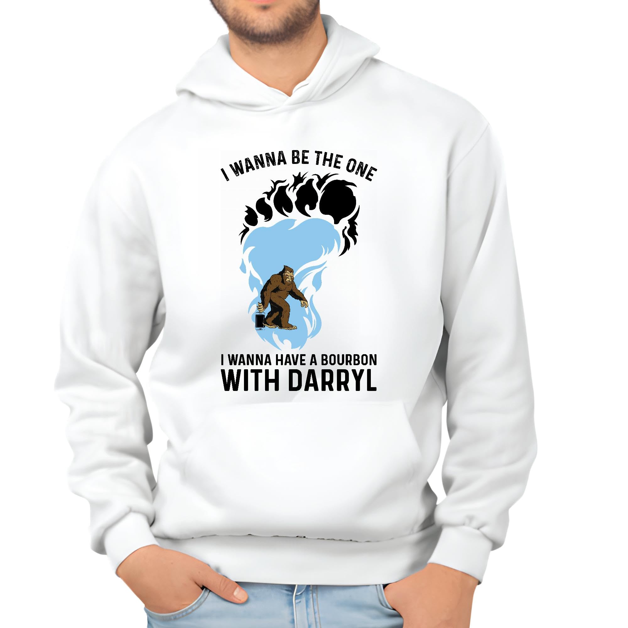 Unique Gift for Wine Lovers I Wanna Be The One Have a Bourbon with Darryl Bigfoot Bourbon White and Muticolor Unisex Hoodie
