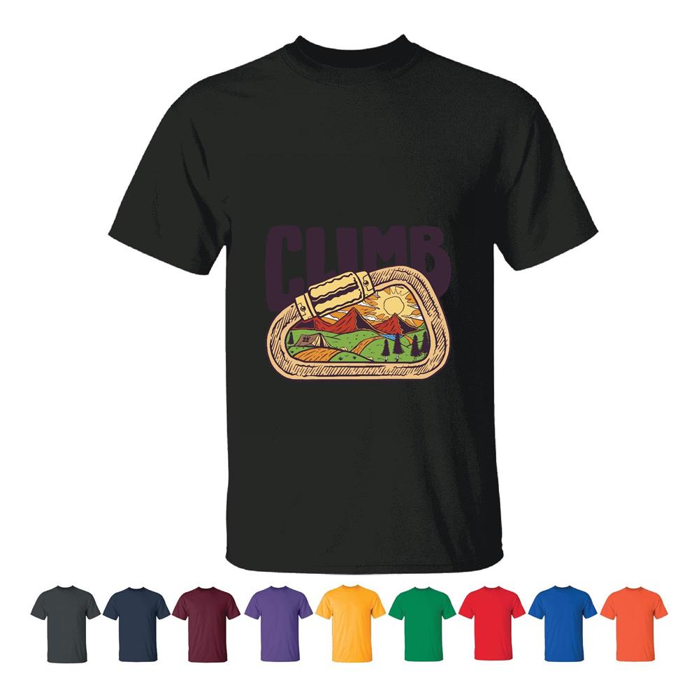 Unique Gift Idea Climbing Carabiner Clip with Landscape Illustration for Climbers and Adventurers Men Women Black T shirt