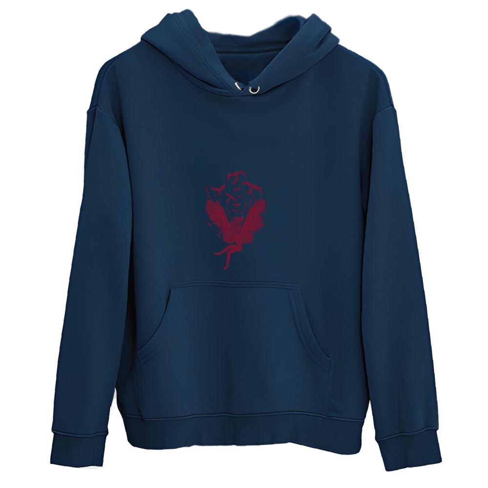 Unique Gift Idea Angel with Birds Design for Nature Lovers Navy and Muticolor Unisex Hoodie