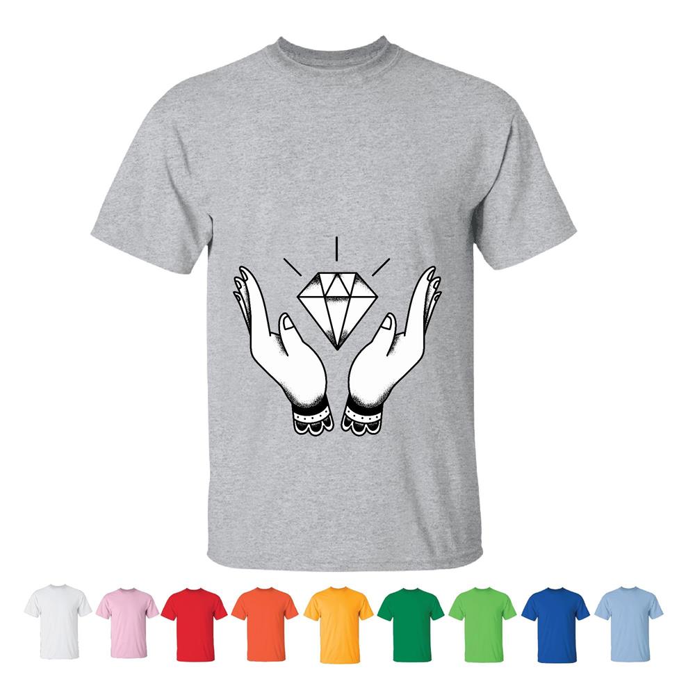 Unique Gift Idea Black and White Design of Two Hands with a Diamond for Any Occasion Men Women White Gray T shirt