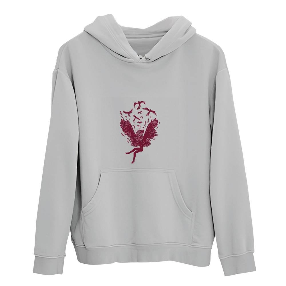 Unique Gift Idea Angel with Birds Design for Nature Lovers Gray and Muticolor Unisex Hoodie