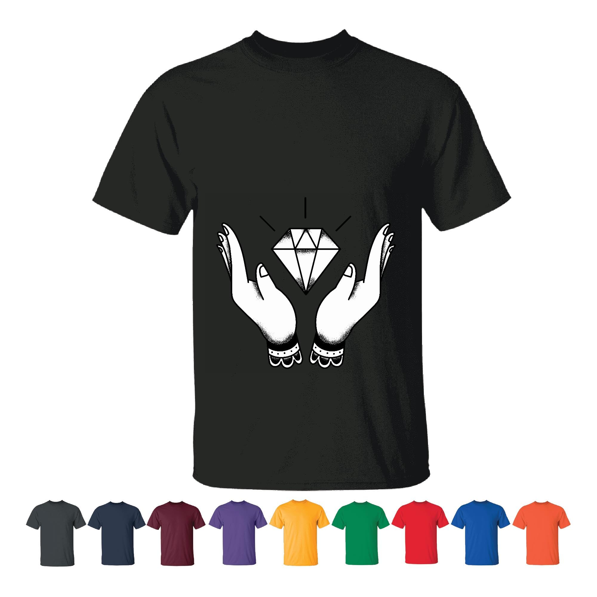 Unique Gift Idea Black and White Design of Two Hands with a Diamond for Any Occasion Men Women Black T shirt
