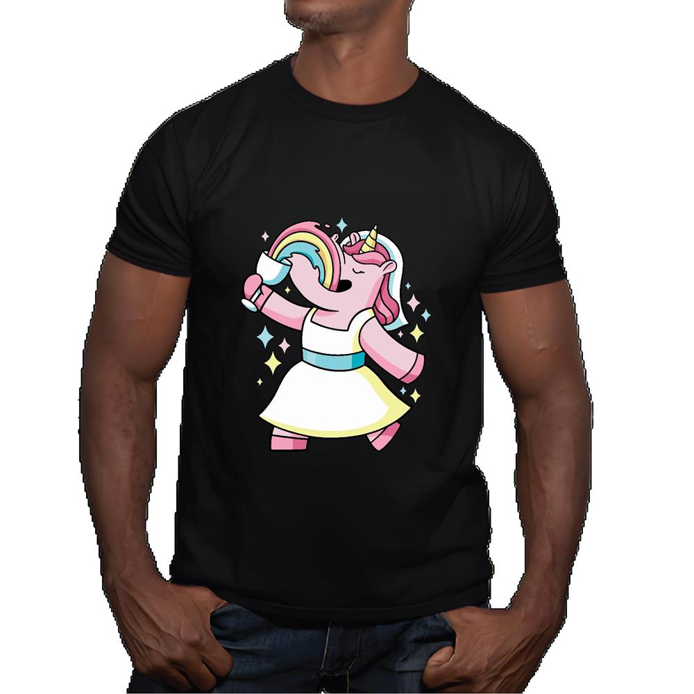Unique Gift Idea for Bride Unicorn in Wedding Dress Drinking Wine Men Women Black Multicolor T shirt