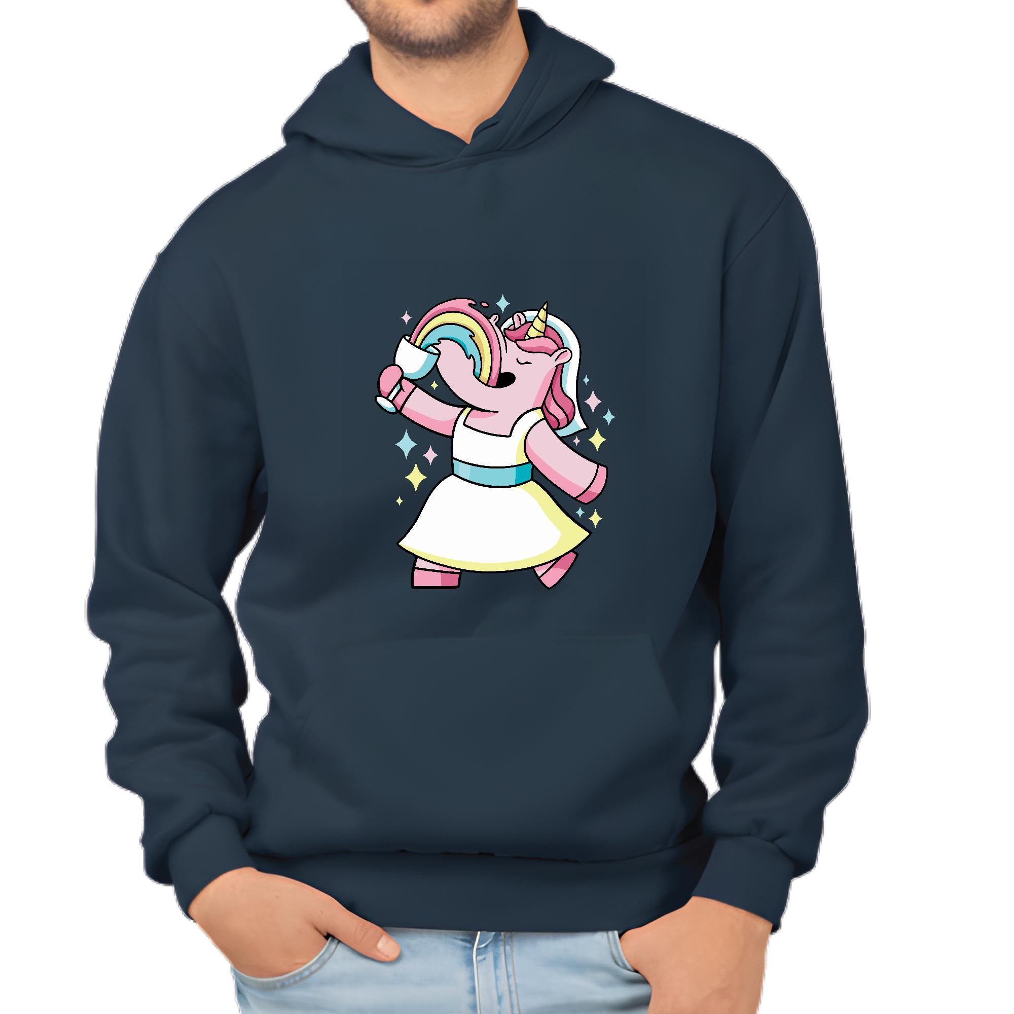 Unique Gift Idea for Bride Unicorn in Wedding Dress Drinking Wine Navy and Muticolor Unisex Hoodie
