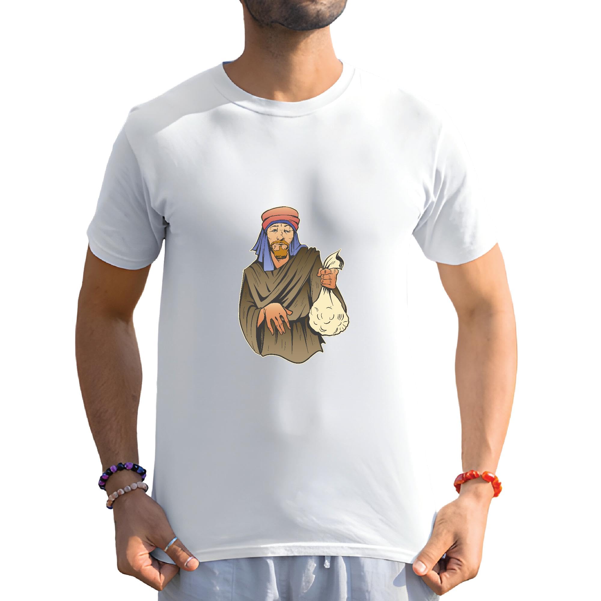 Unique Gift Idea for Business Owners Money Bag Holding Merchant Figurine Men Women White Gray Multicolor T shirt