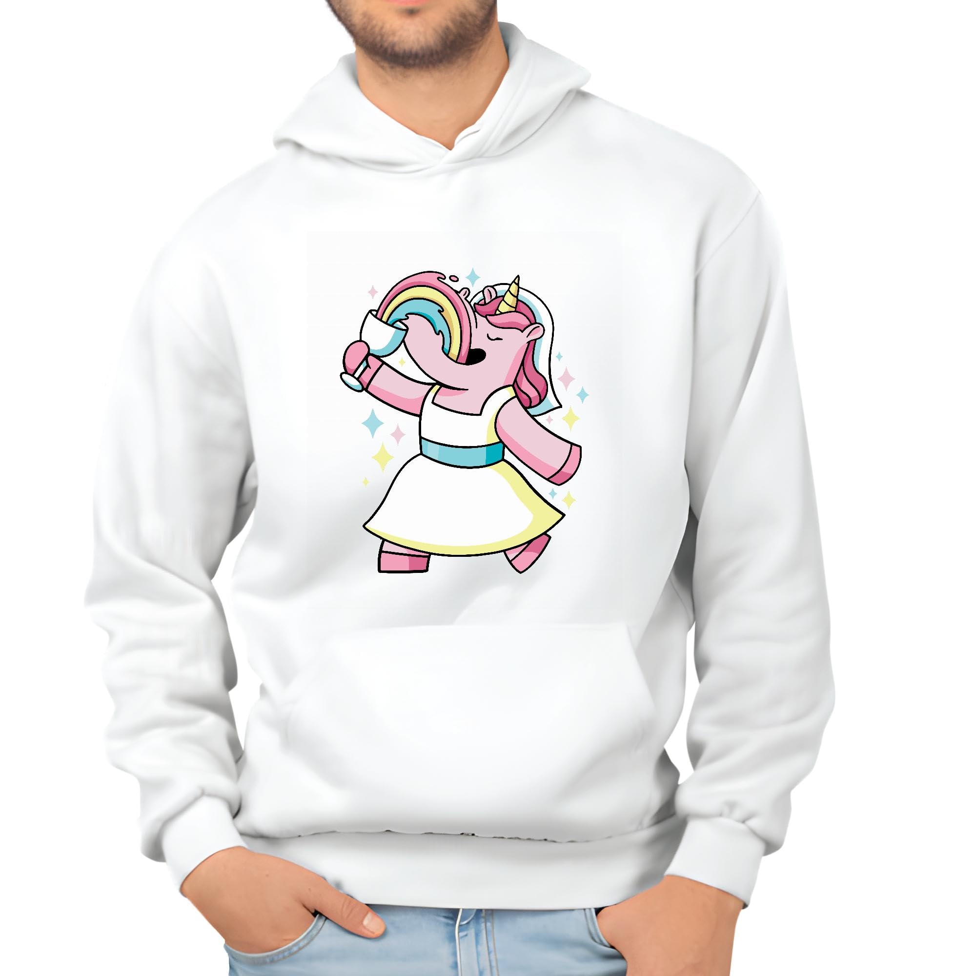 Unique Gift Idea for Bride Unicorn in Wedding Dress Drinking Wine White and Muticolor Unisex Hoodie