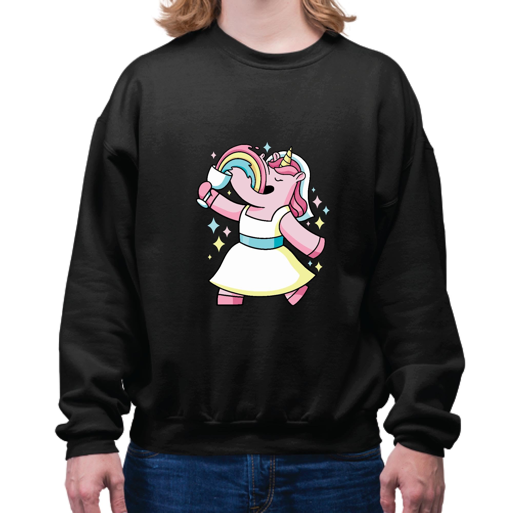 Unique Gift Idea for Bride Unicorn in Wedding Dress Drinking Wine Navy Black Muticolor Unisex Sweatshirt