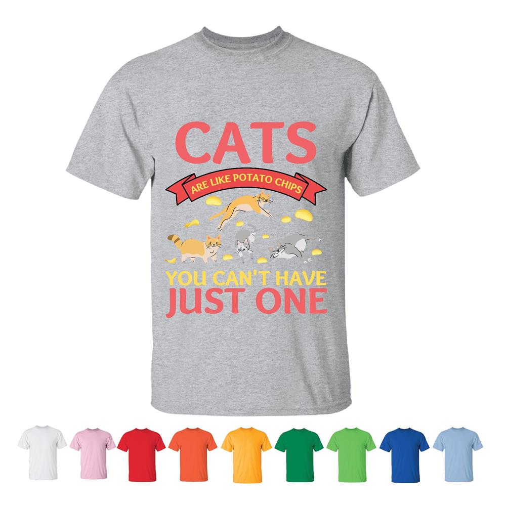 Unique Gift Idea for Cat Lovers Cats are Like Potato Chips You Can not Have Just One Men Women White Gray T shirt