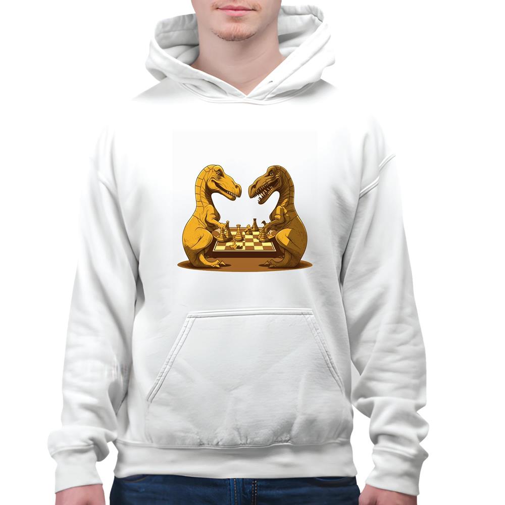 Unique Gift Idea for Chess Grandmasters – Two Dinosaurs Playing White and Muticolor Unisex Hoodie