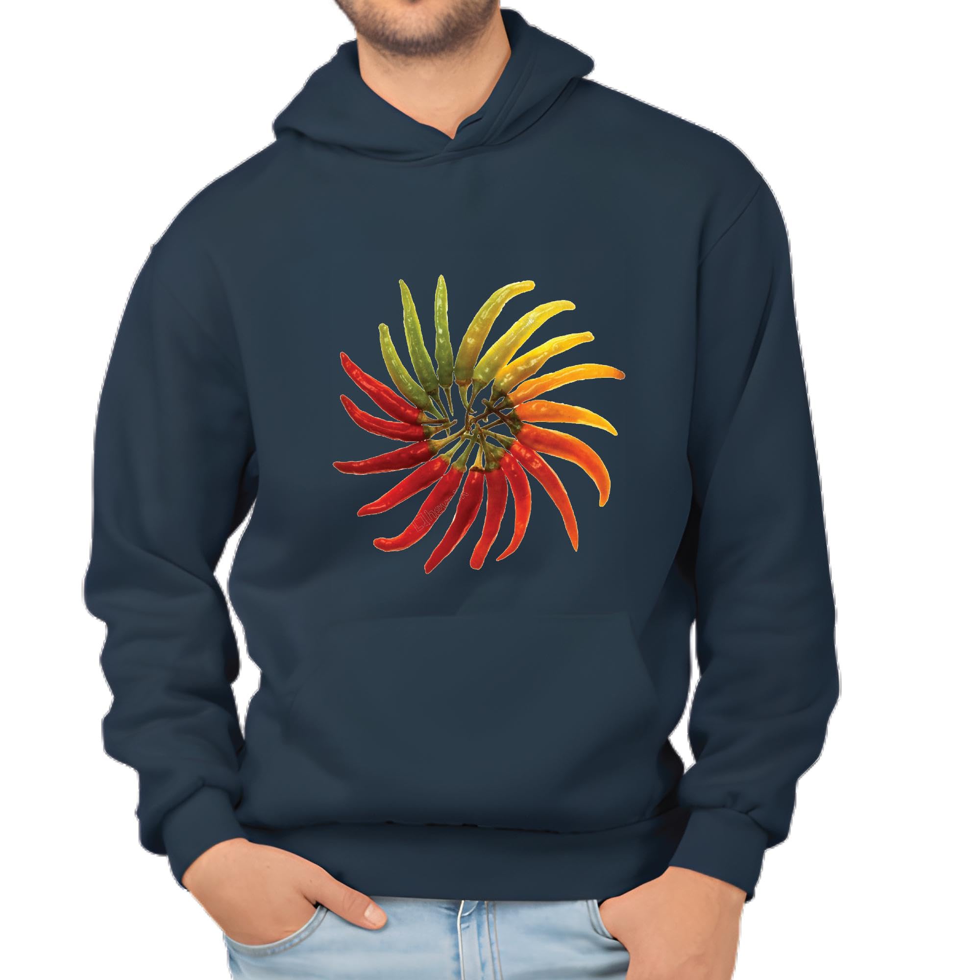Unique Gift Idea for Chilli Lovers Navy and Muticolor Unisex Hoodie
