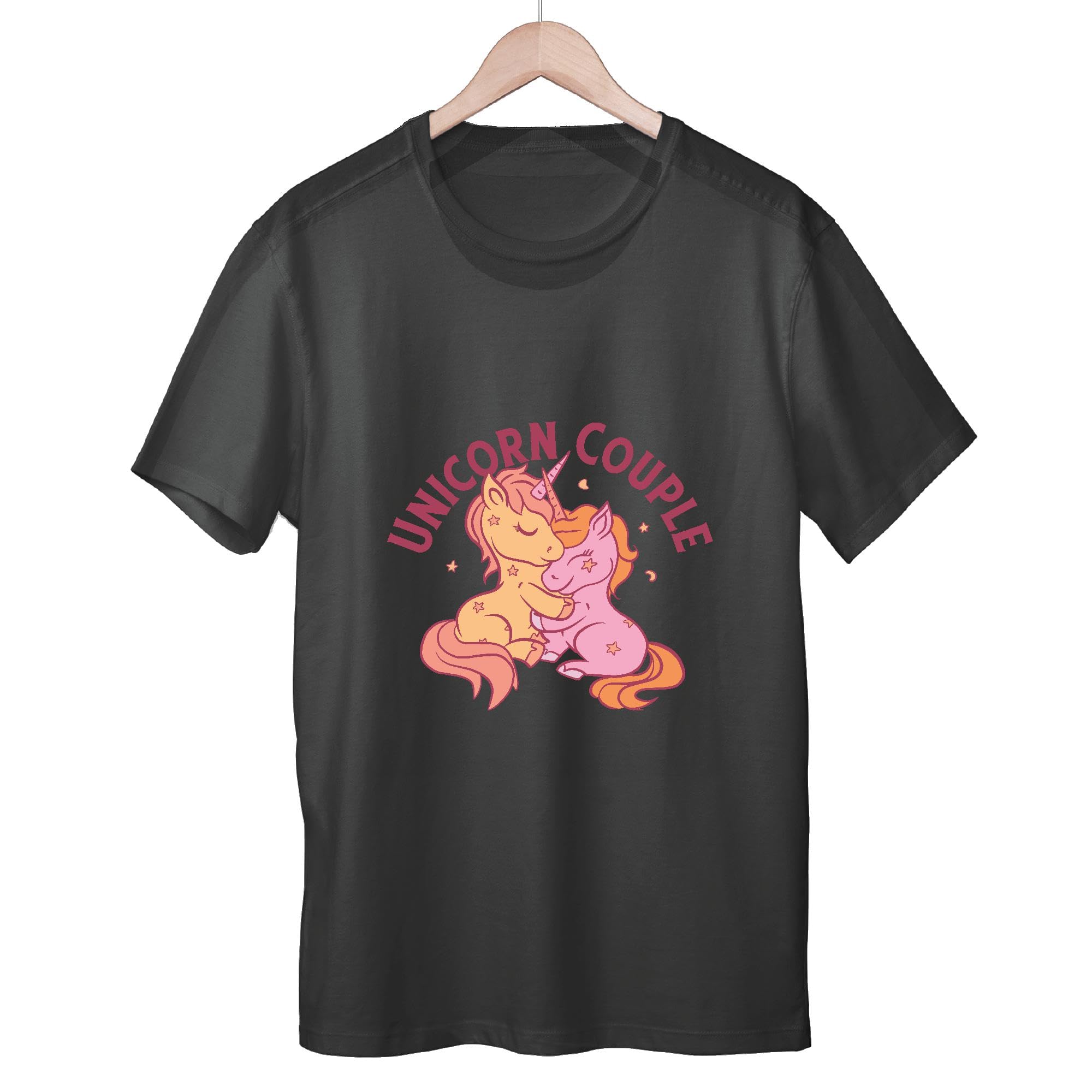 Unique Gift Idea for Couples Unicorn Couples Hugging Figurine Men Women Black Multicolor T shirt