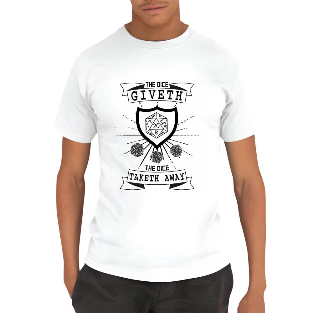 Unique Gift Idea for Gamers The Dice Giveth and Taketh Away Men Women White Gray Multicolor T shirt