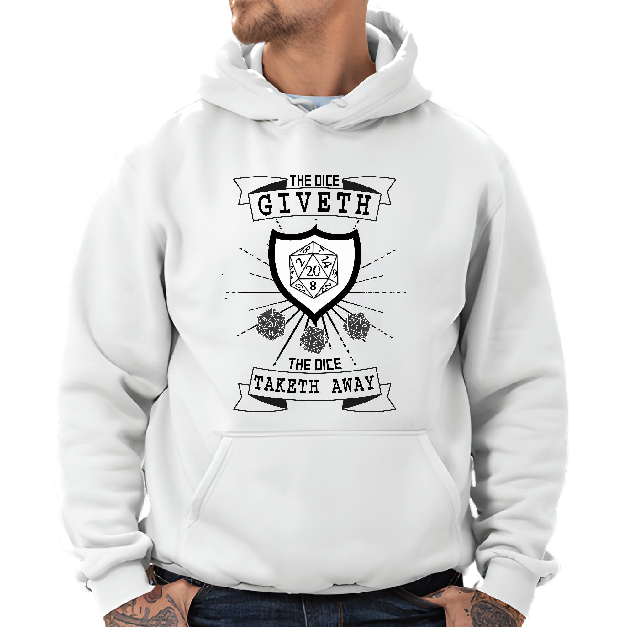 Unique Gift Idea for Gamers The Dice Giveth and Taketh Away Gray and Muticolor Unisex Hoodie