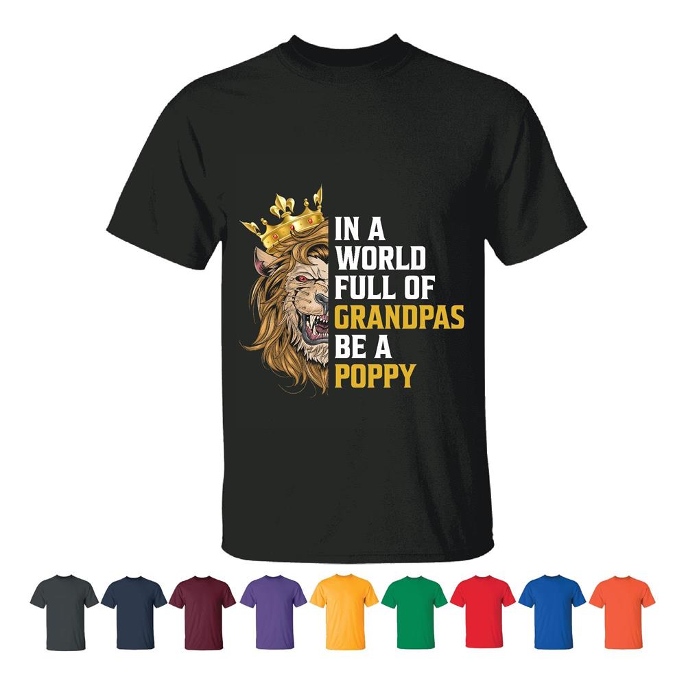 Unique Gift Idea for Grandpas King Lion Face Design Men Women Black T shirt