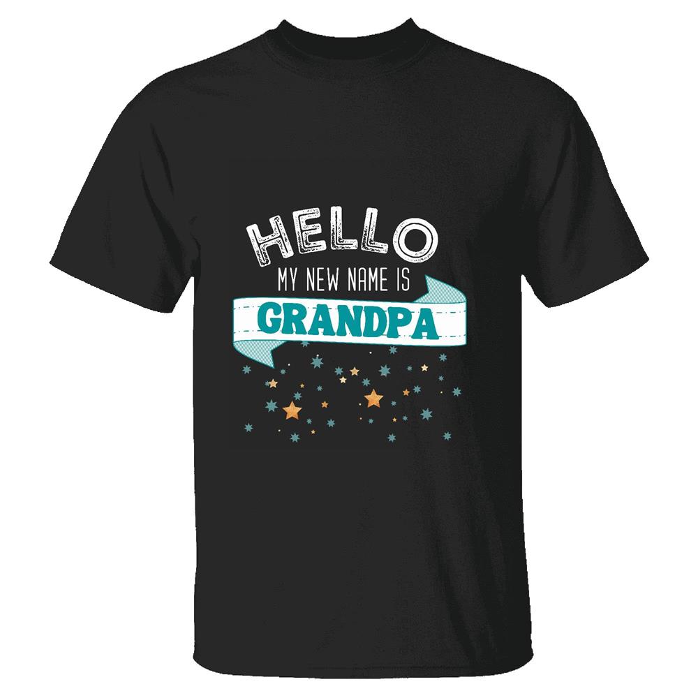 Unique Gift Idea for Grandparents Hello My New Name is GRANDPA Men Women Black Multicolor T shirt