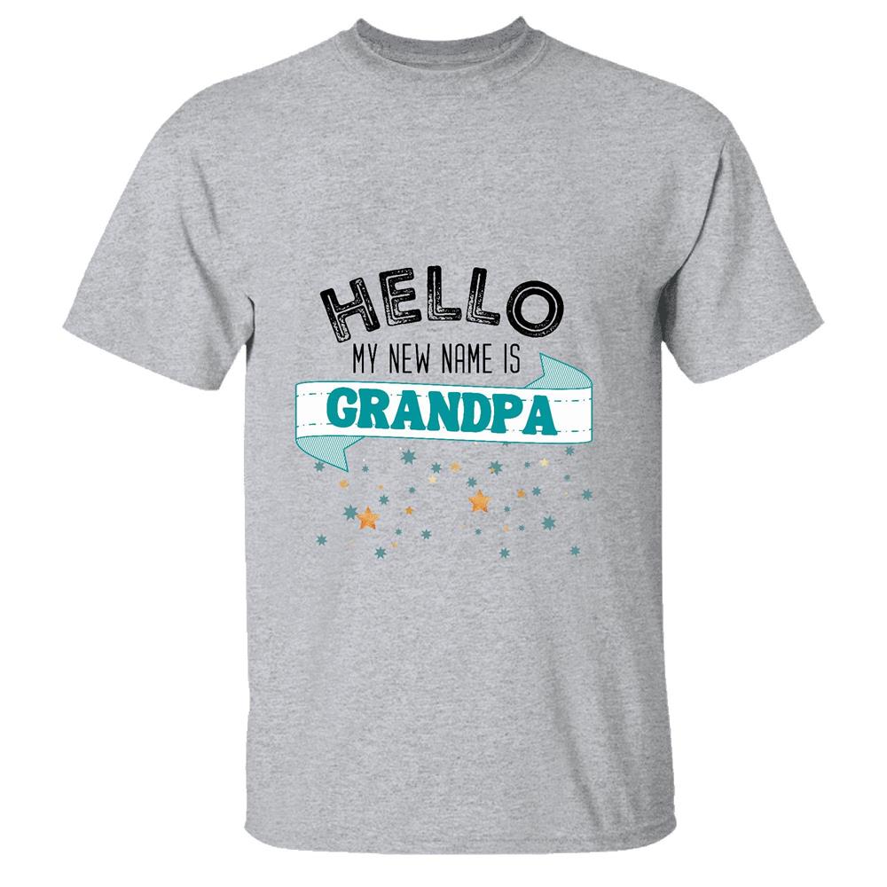 Unique Gift Idea for Grandparents Hello My New Name is GRANDPA Men Women White Gray Multicolor T shirt