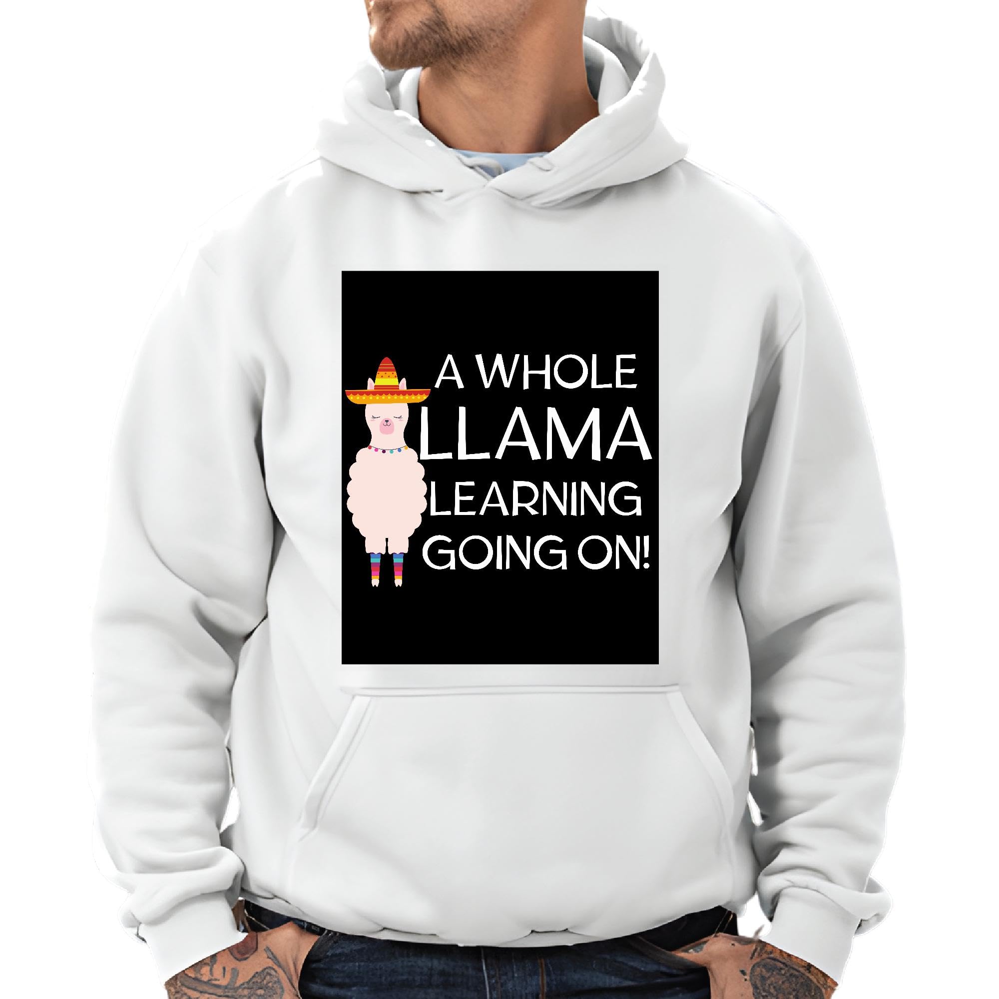 Unique Gift Idea for Llama Lovers Teacher Appreciation Gray and Muticolor Unisex Hoodie