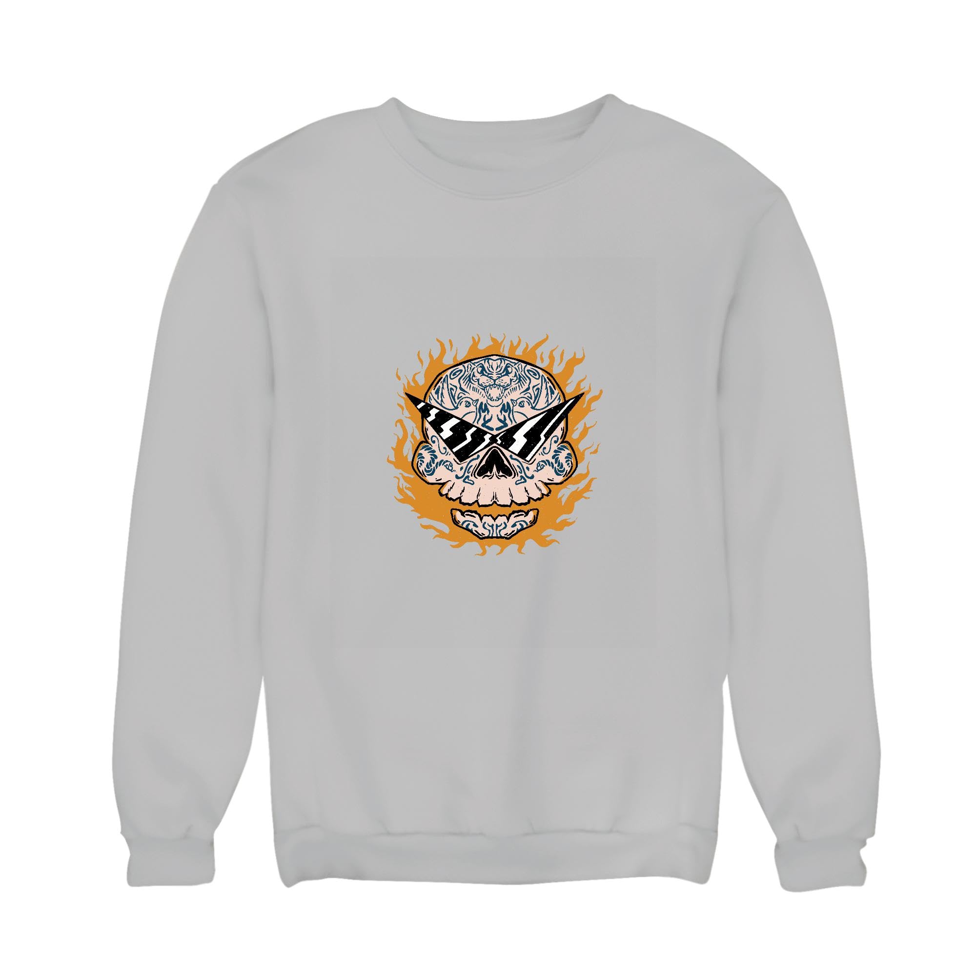 Unique Gift Idea for Men Skull with Tiger Tattoo and Flames for Birthdays and Holidays Grey Muticolor Unisex Sweatshirt