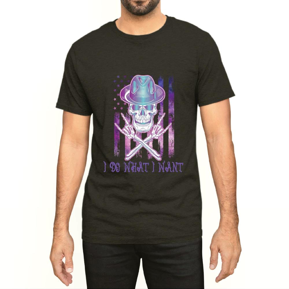 Unique Gift Idea for Patriotic Americans I Do What I Want Skull Cross Bone US Flag Men Women Black Multicolor T shirt