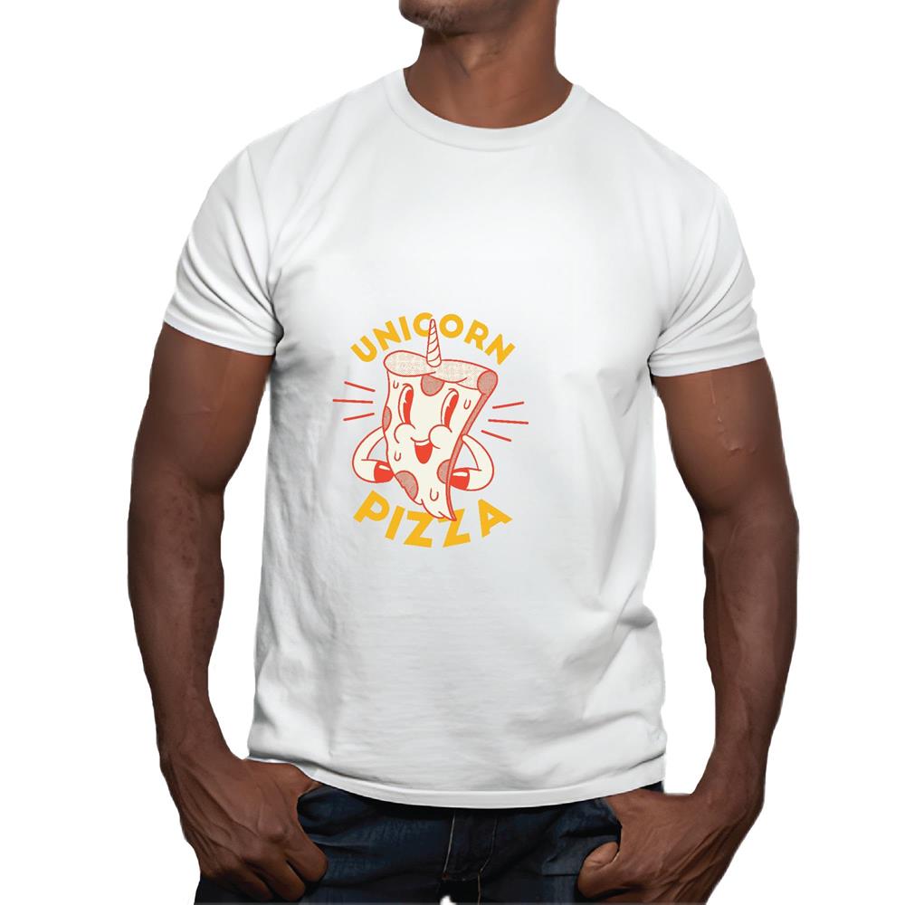 Unique Gift Idea for Pizza Lovers Unicorn Pizza with Horn Caption Men Women White Gray Multicolor T shirt