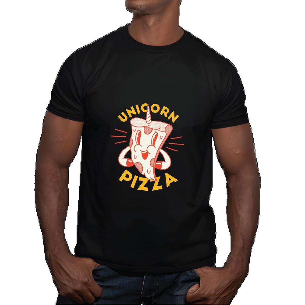 Unique Gift Idea for Pizza Lovers Unicorn Pizza with Horn Caption Men Women Black Multicolor T shirt