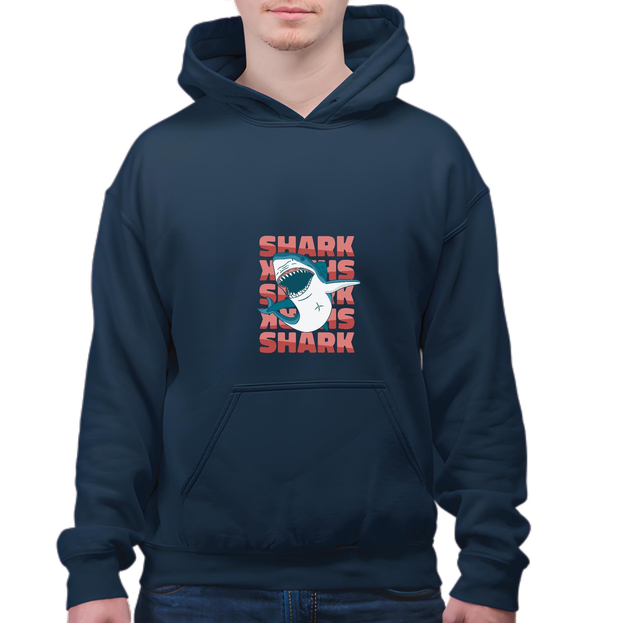 Unique Gift Idea for Shark Lovers Sea Animal Shark Swimming Design Navy and Muticolor Unisex Hoodie