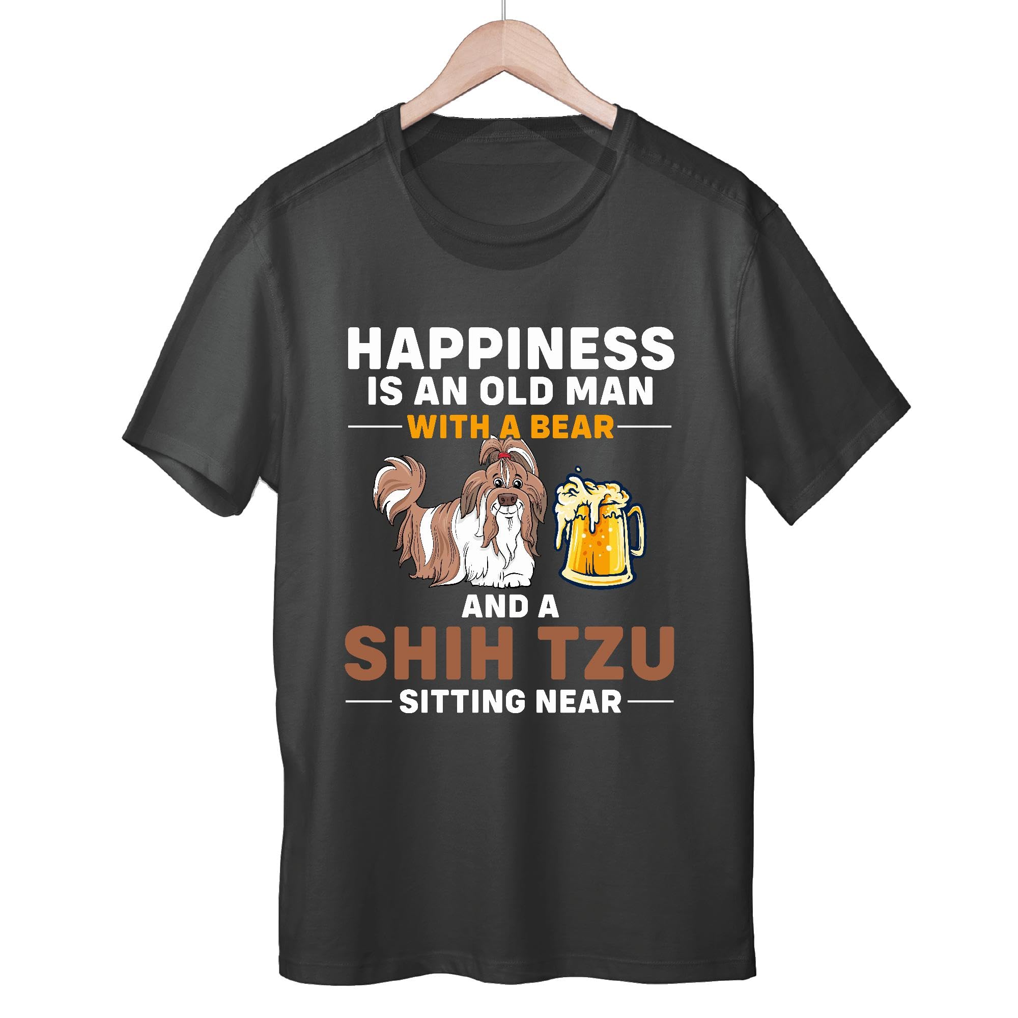 Unique Gift Idea for Shih Tzu LoversOld Man and Beer Drinking Men Women Black Multicolor T shirt