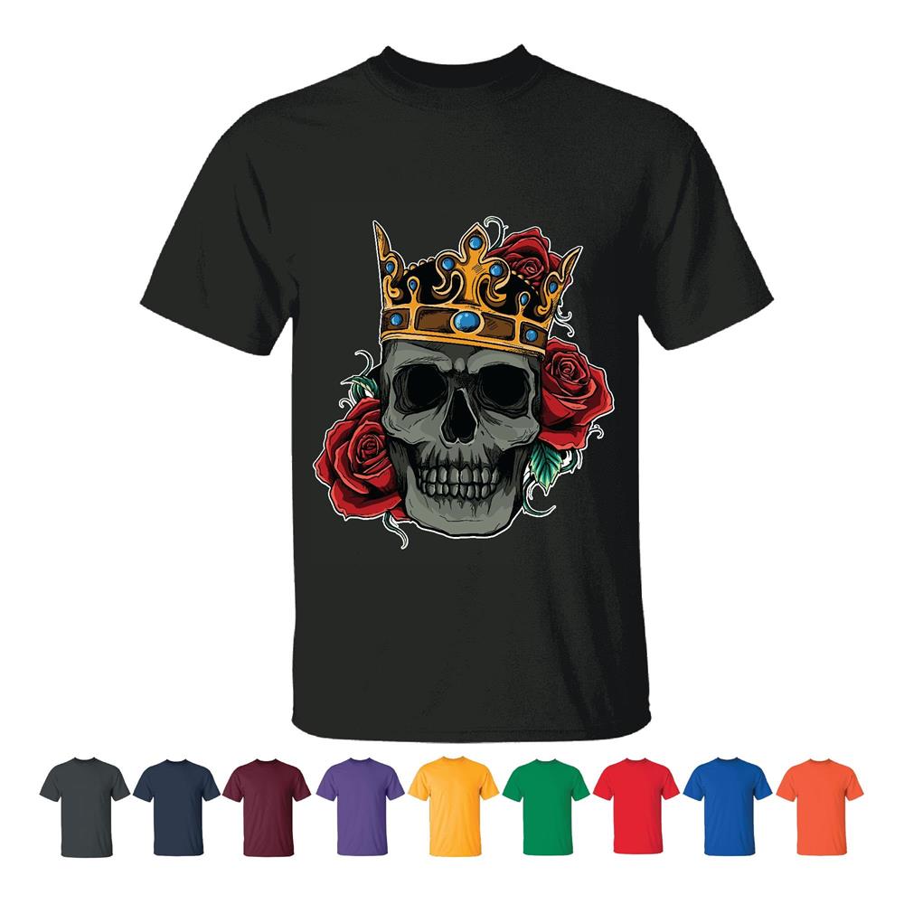 Unique Gift Idea for Skull Crown Flower Lovers Men Women Black T shirt