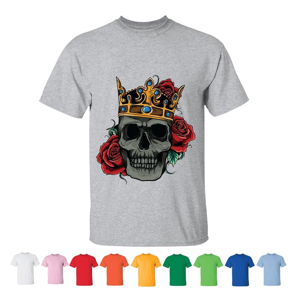 Unique Gift Idea for Skull Crown Flower Lovers Men Women White Gray T shirt