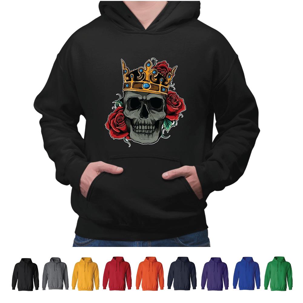 Unique Gift Idea for Skull Crown Flower Lovers Gray and Muticolor Unisex Hoodie