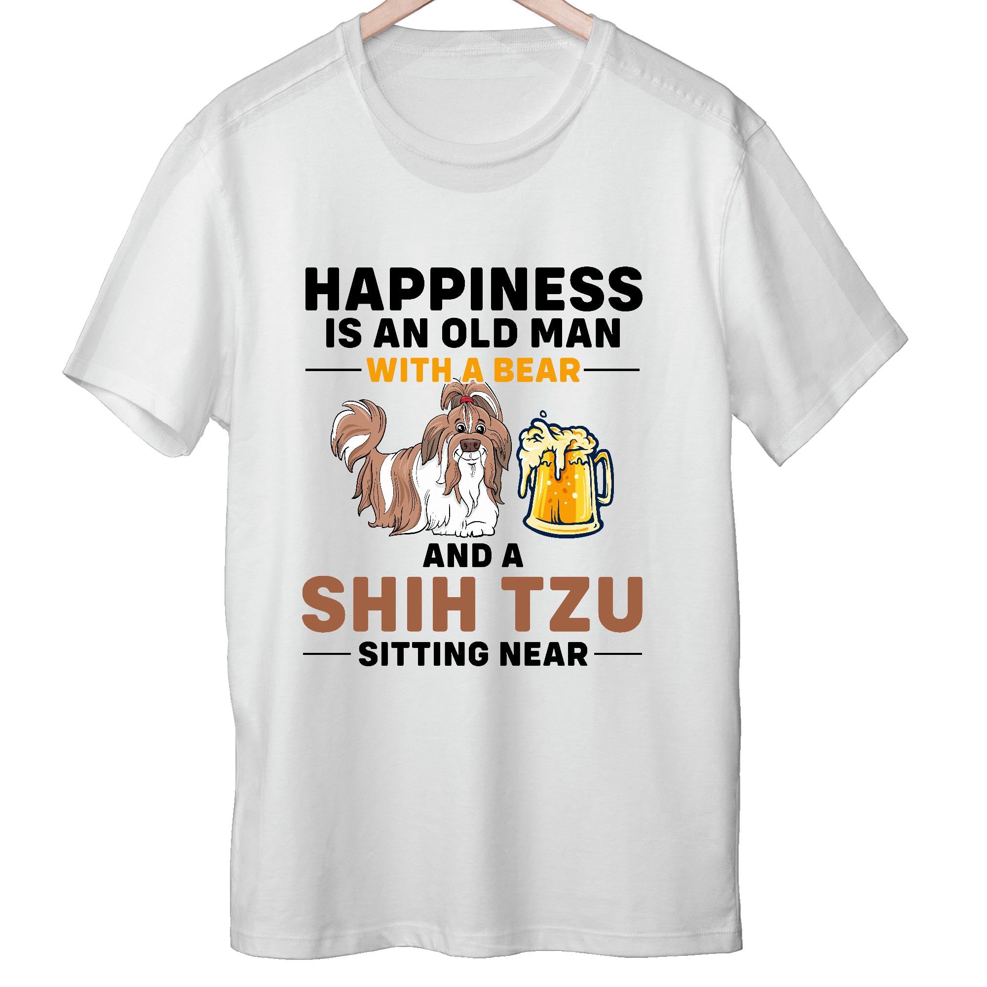 Unique Gift Idea for Shih Tzu LoversOld Man and Beer Drinking Men Women White Gray Multicolor T shirt