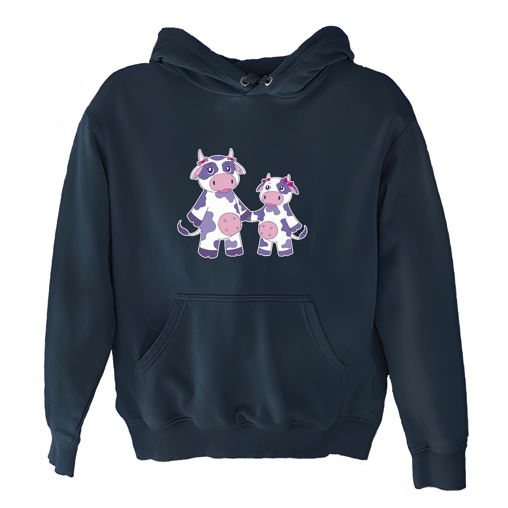 Unique Gift Idea for Sisters Two Cow Sisters Holding Hands for Family and Friends Navy and Muticolor Unisex Hoodie