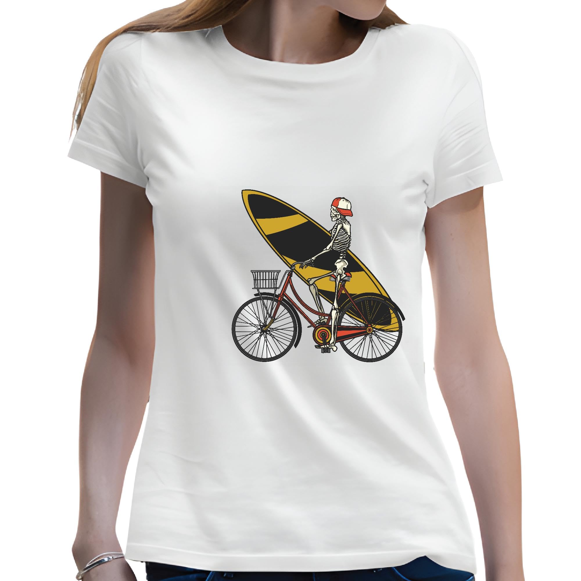 Unique Gift Idea for Skaters and Surfers Cycling Skeleton with Hat Men Women White Gray Multicolor T shirt