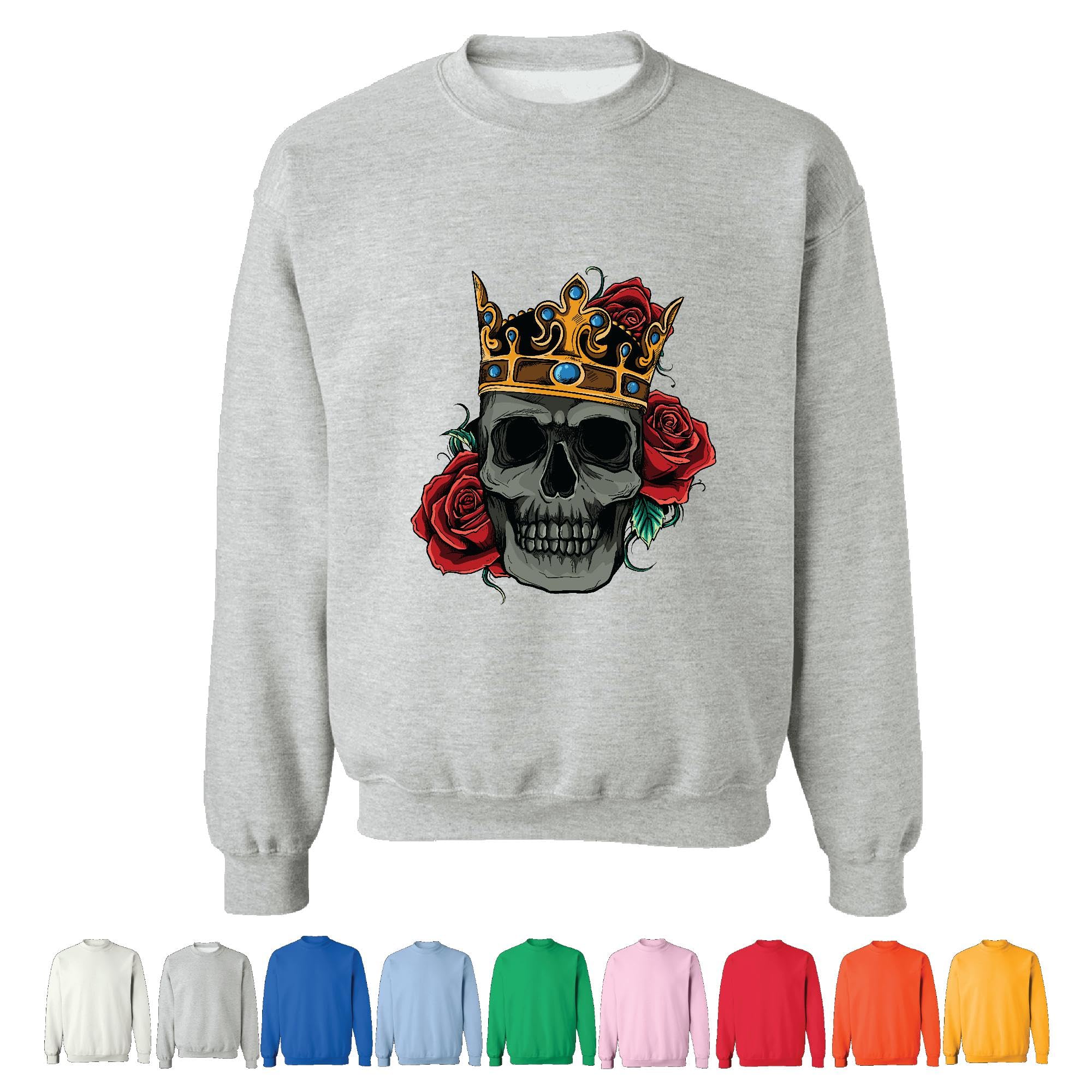 Unique Gift Idea for Skull Crown Flower Lovers Grey Muticolor Unisex Sweatshirt