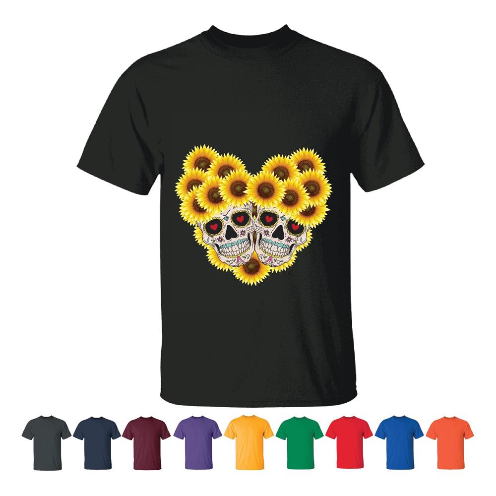 Unique Gift Idea for Skulls and Sunflowers Lovers Men Women Black T shirt