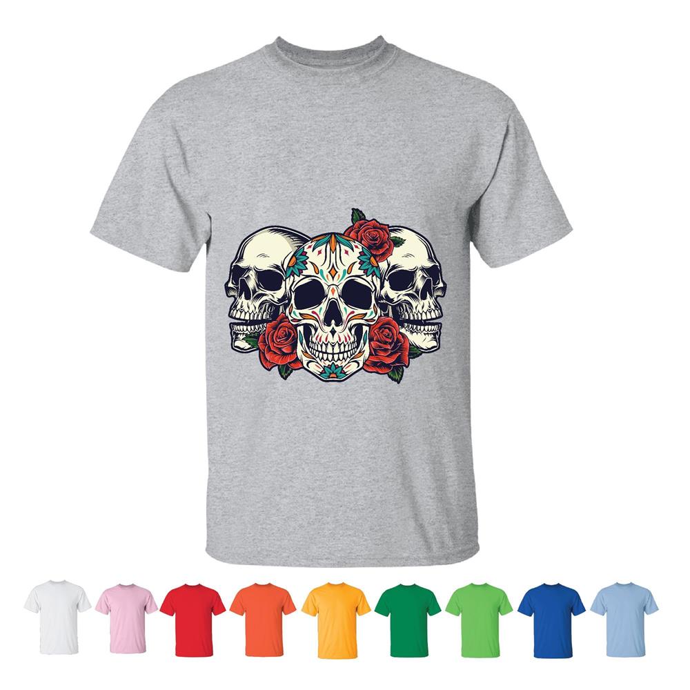 Unique Gift Idea for Skull Lovers Vintage Style Men Women White Gray Multicolor T shirt