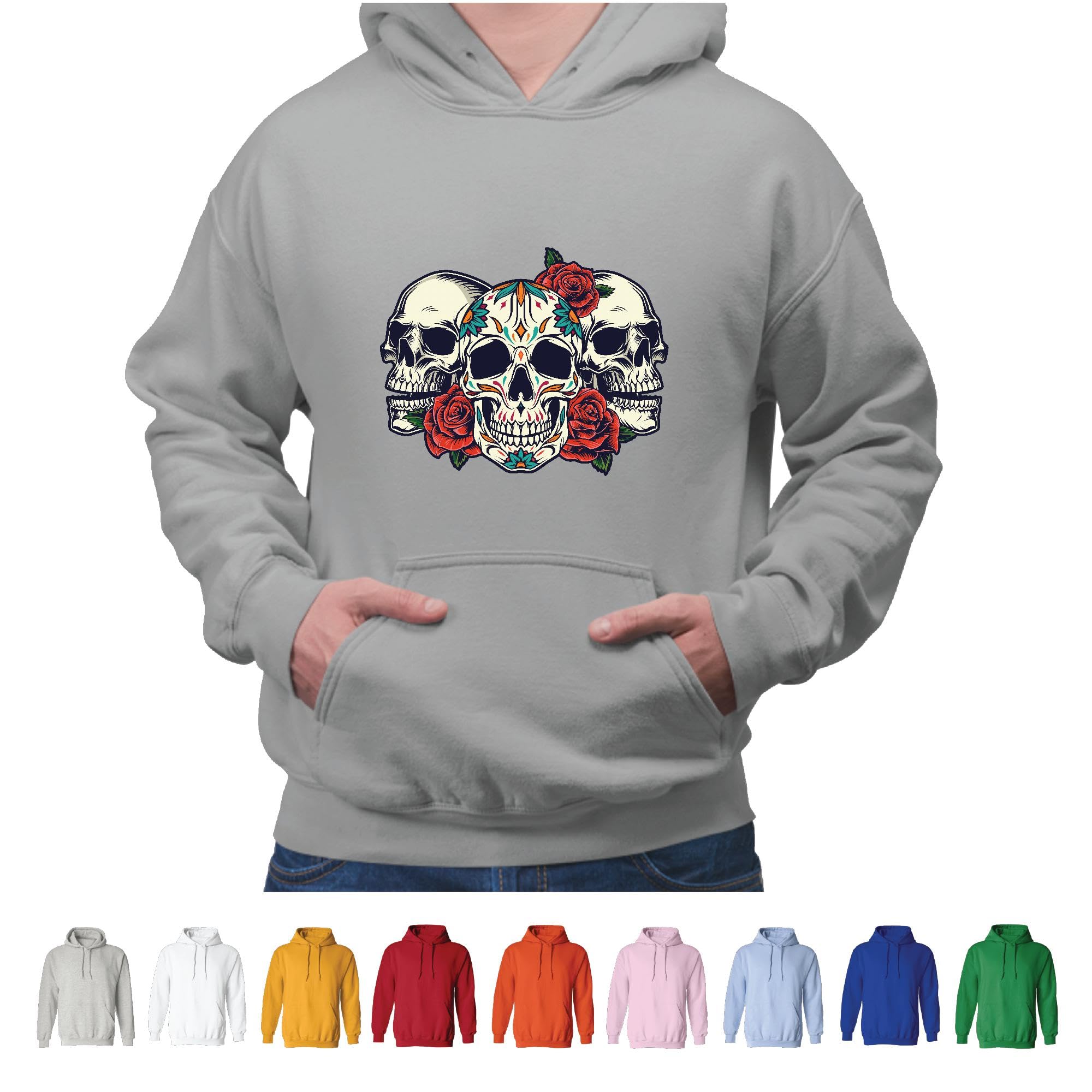 Unique Gift Idea for Skull Roses Graphic Design Lovers Gray and Muticolor Unisex Hoodie