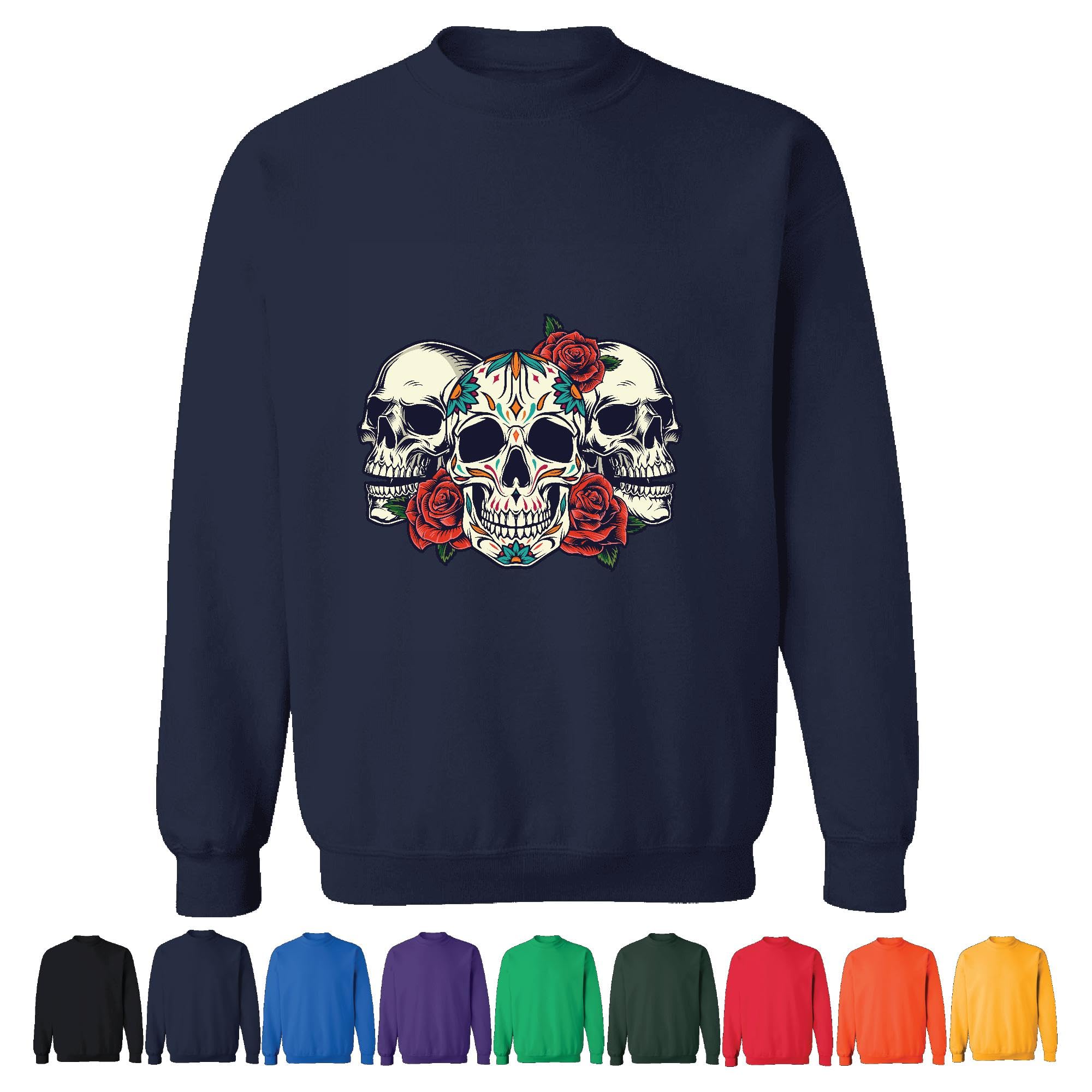 Unique Gift Idea for Skull Roses Graphic Design Lovers Navy Muticolor Unisex Sweatshirt
