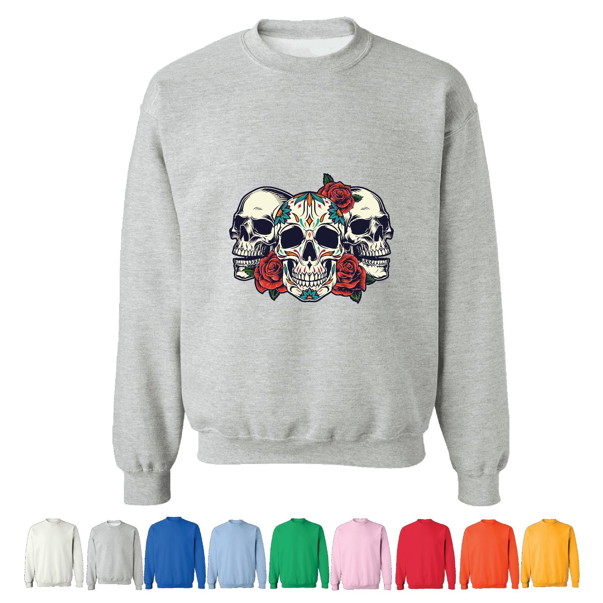Unique Gift Idea for Skull Roses Graphic Design Lovers Grey Muticolor Unisex Sweatshirt