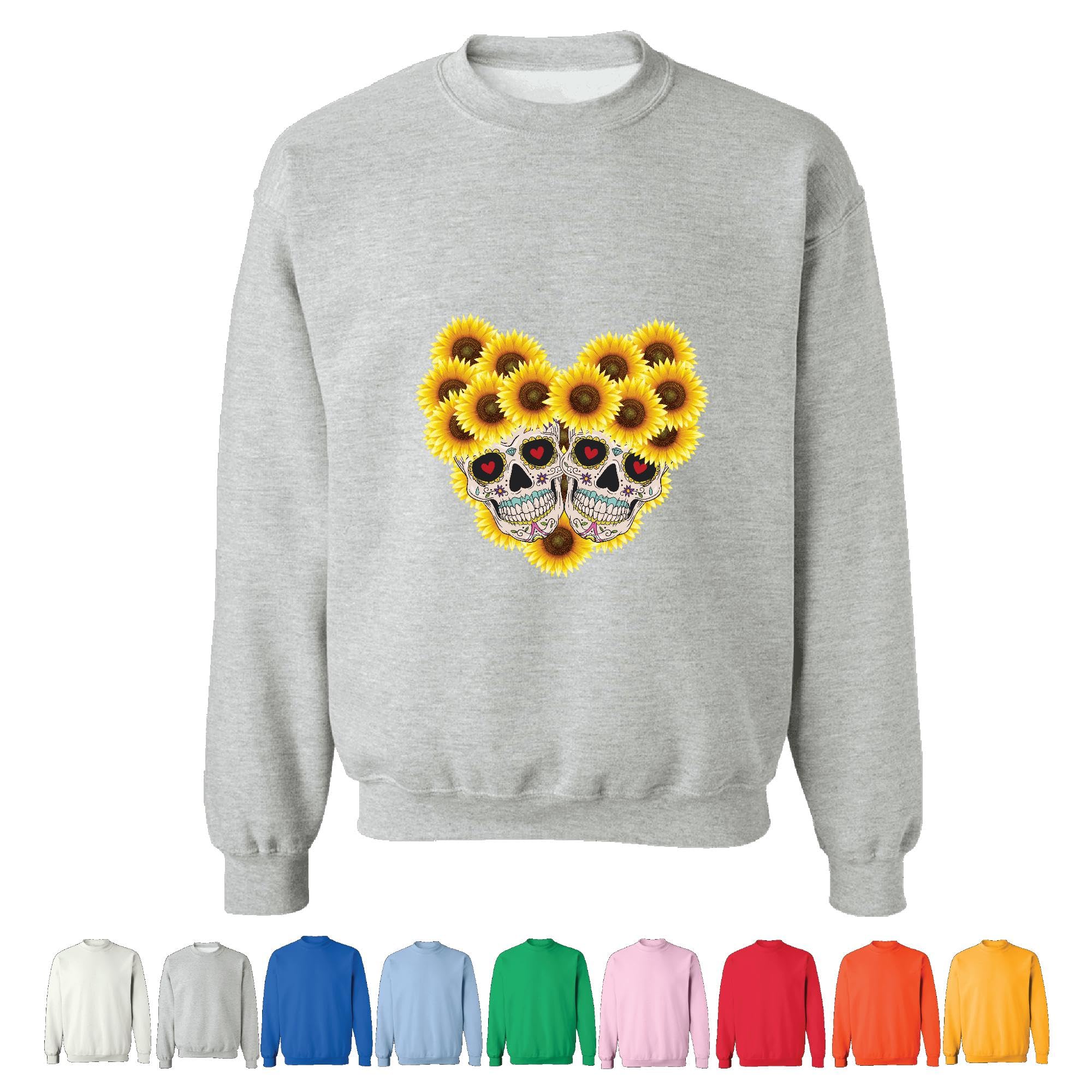Unique Gift Idea for Skulls and Sunflowers Lovers Grey Muticolor Unisex Sweatshirt