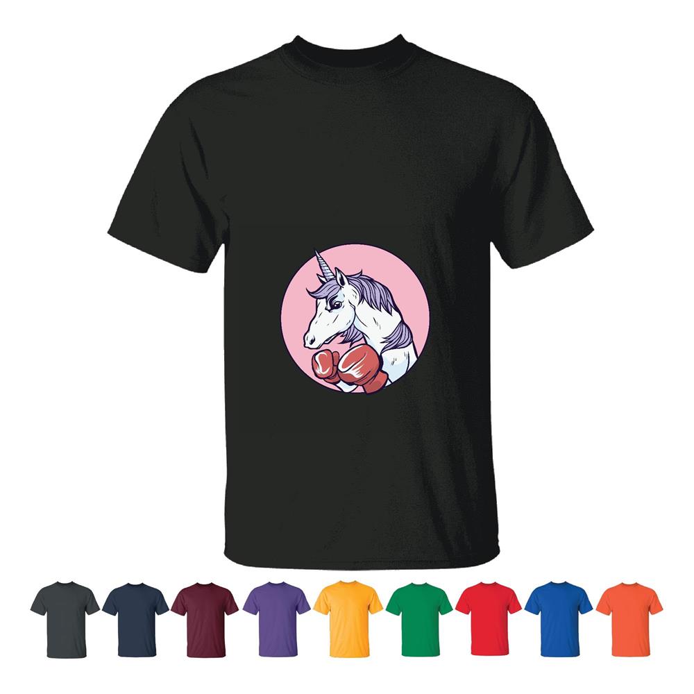 Unique Gift Idea for Unicorn Lovers Angry Unicorn Boxing Illustration Men Women Black T shirt